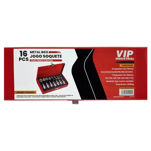 JOGO DE SOQUETES TORX MACHO FEMEA 16PCS