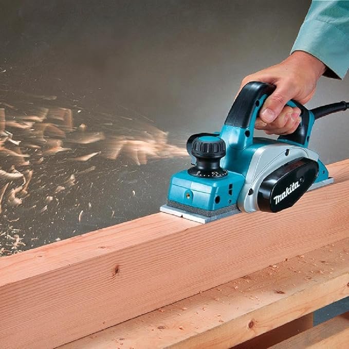 Plaina elétrica MAKITA possui motor com dupla isolação é adaptável a coletor/aspirador de pó, ângulo e formato do punho proporciona uma facilidade no manuseio e no transporte, motor potente com 620W.
